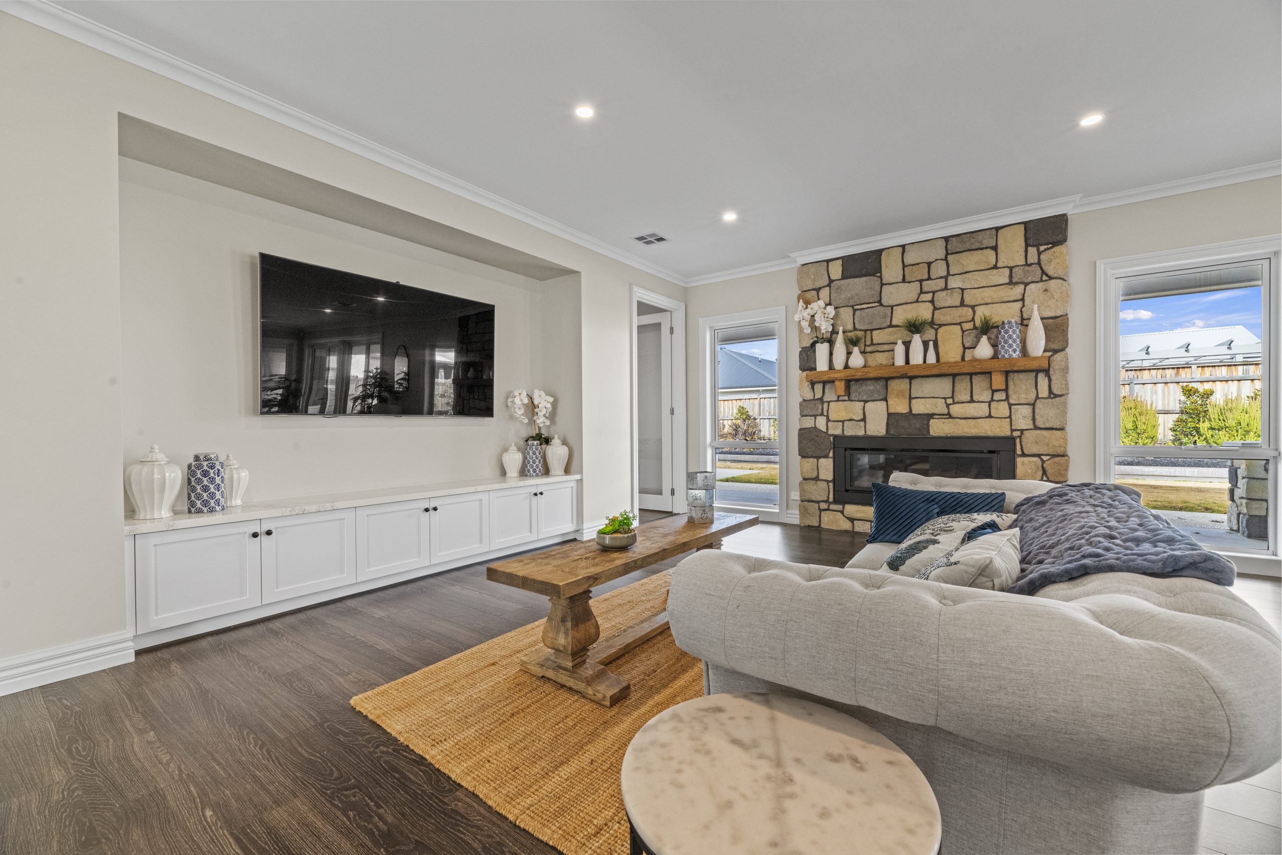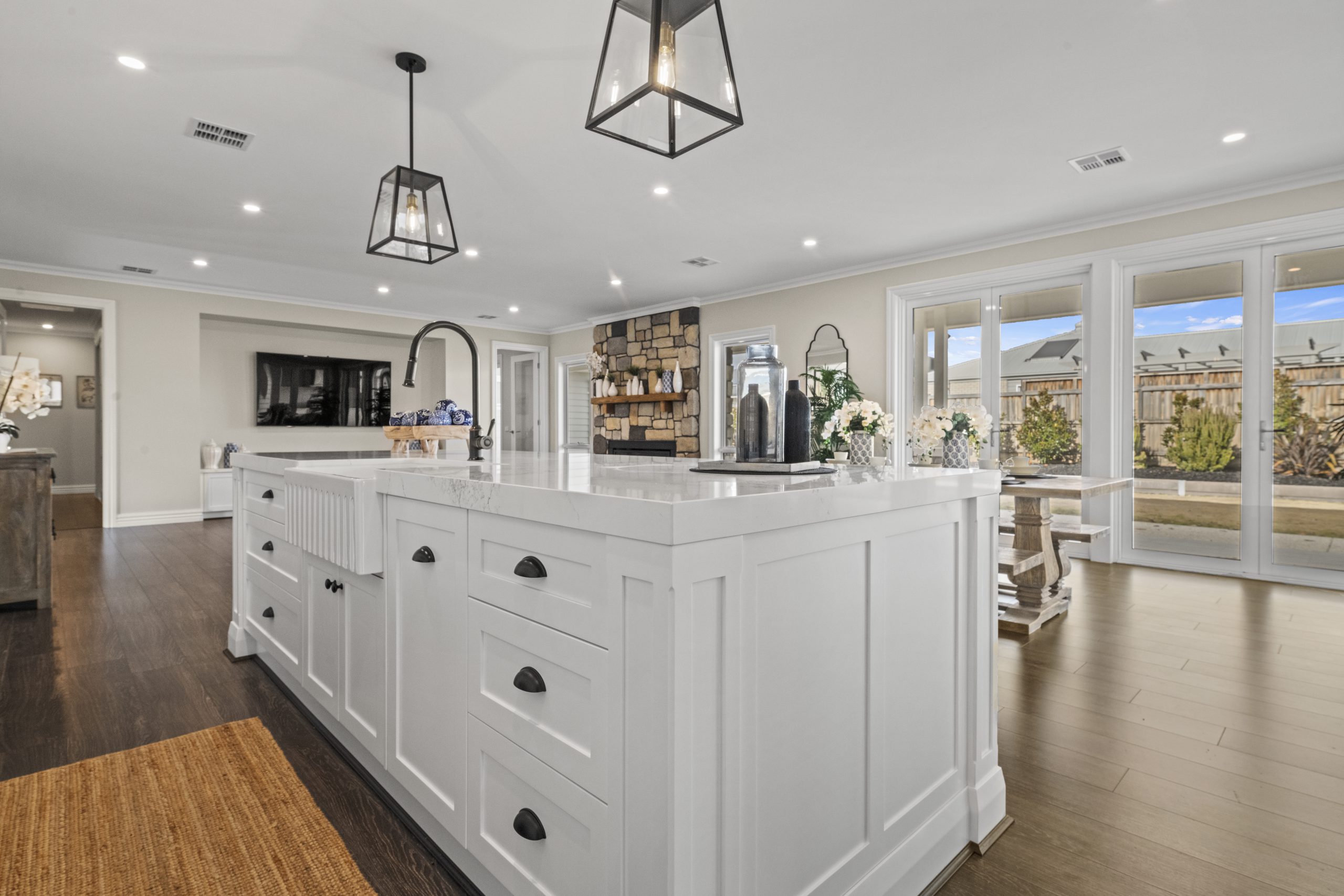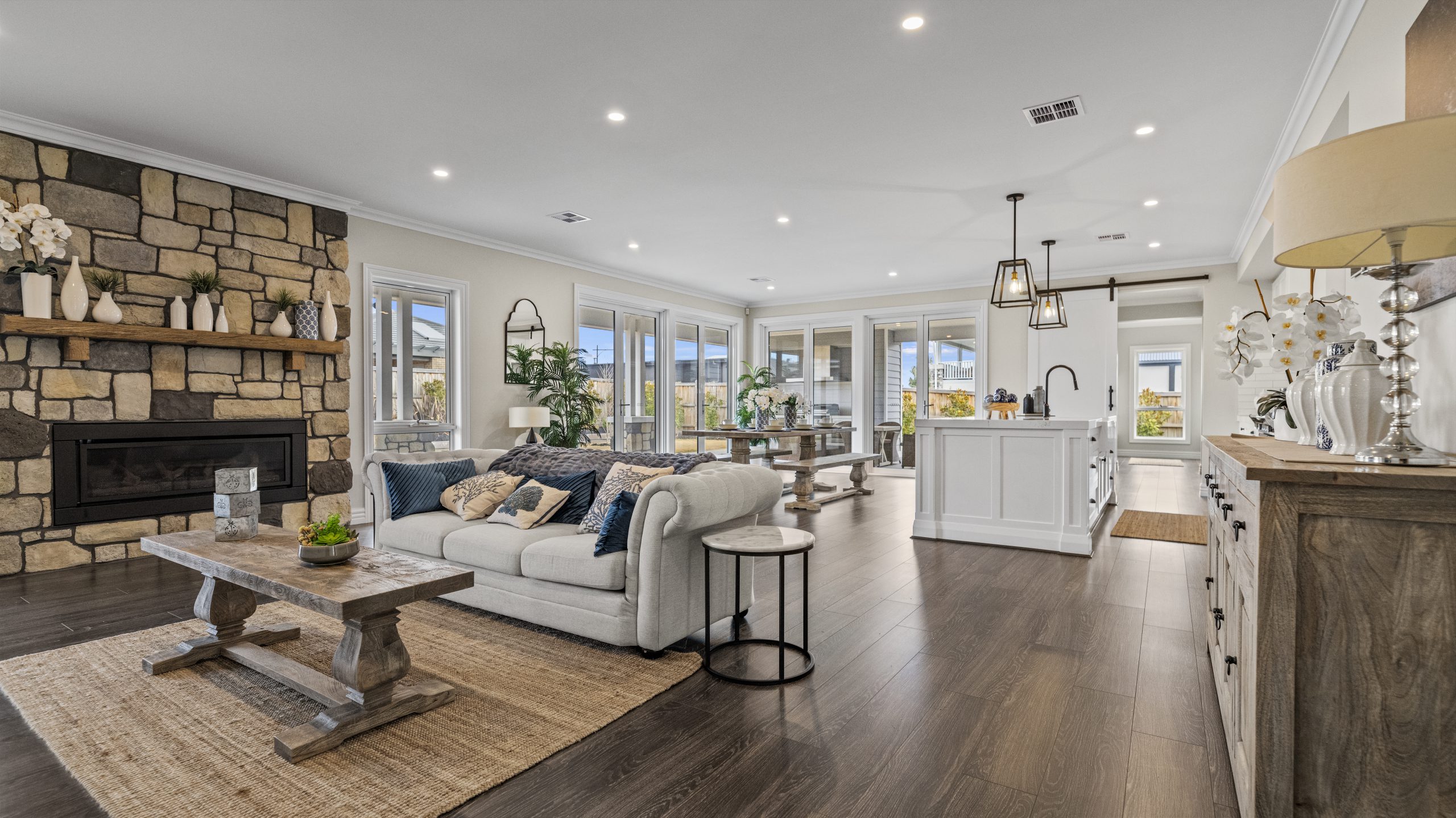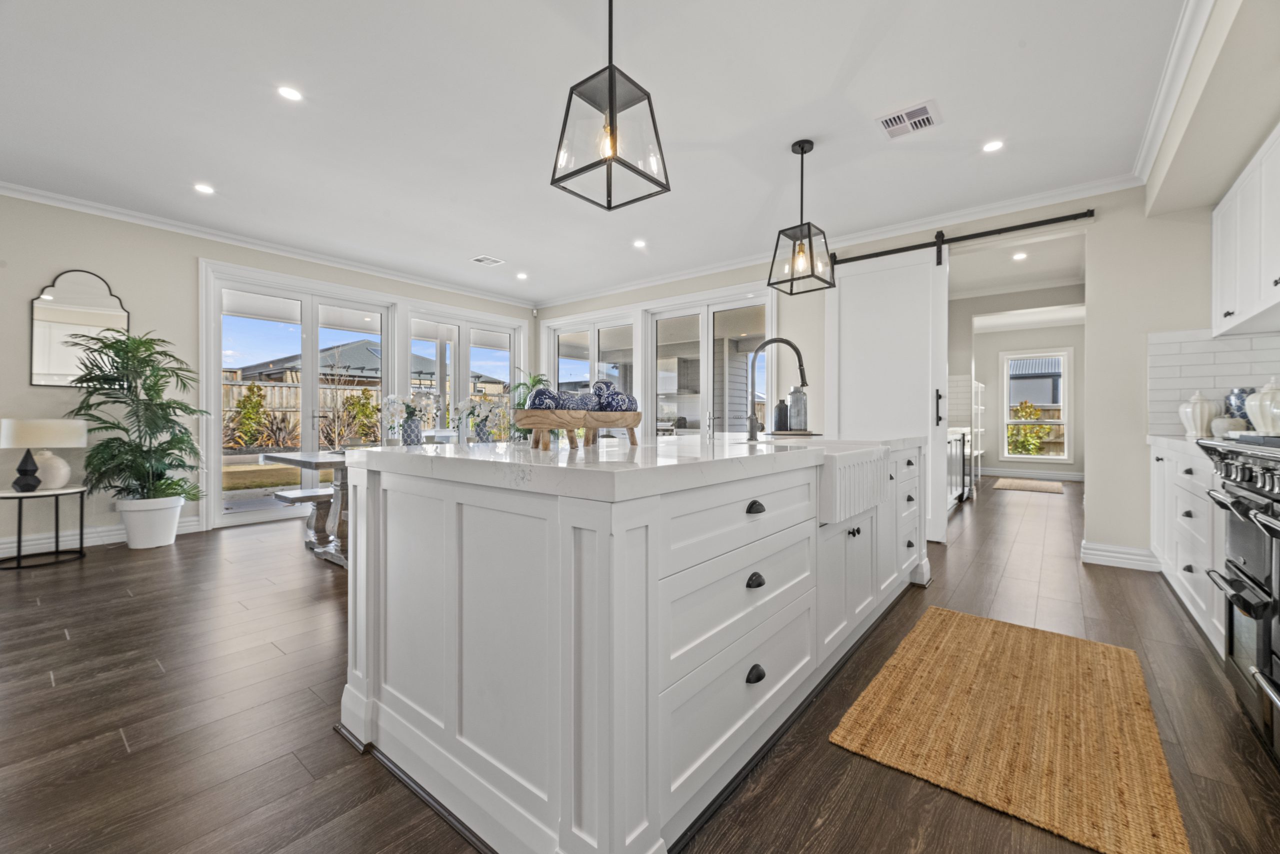 The Panorama by Quantum Homes is a breath-taking display home that beautifully combines contemporary design with the charm of a ranch-style layout. This home boasts expansive open-plan living areas, offering a seamless flow between indoor and outdoor spaces. Large windows allow for an abundance of natural light and provide stunning views of the surrounding landscape, enhancing the sense of connection with nature. The design showcases sleek, modern finishes alongside warm, inviting materials, creating a space that is both stylish and comfortable. With attention to detail and energy-efficient features, the Panorama offers a sophisticated living experience that is perfect for those looking for luxury and practicality in one.